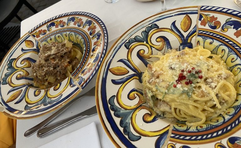 Tonnarello se encuentra en el Trastévere, es un sitio súper acogedor y auténtico. Hacen la forma de pasta casera y todo esta muy bueno. Su plato más famoso es «Cacio e Pepe». En la carta podrás encontrar platos desde aproximadamente 10€ hasta 25€. Ten en cuenta que suele estar bastante concurrido y es probable que tengas que hacer cola, pero merece la pena. Y, de postre… ¡Su famoso tiramisú! Estaba increíble.