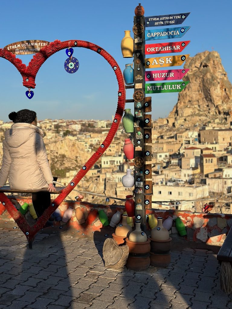 Desde la cima del castillo, se puede ver toda la Capadocia, incluidas las famosas chimeneas de hadas y el monte Erciyes en la distancia. Este es un muy buen punto si queréis comprar souvenirs. ¡son muy económicos!