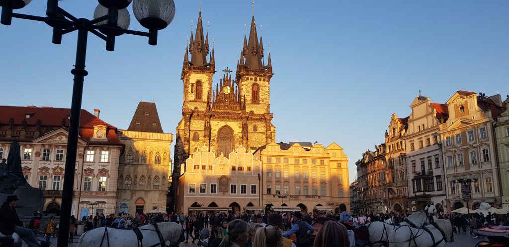 Empezamos nuestra ruta por Praga en la Plaza de la Ciudad Vieja. Fundada en el Siglo XII, esta plaza alberga la Iglesia de Nuestra Señora de Týn y el Reloj Astronómico.  De estilo gótico y renacentista, este punto de Praga es uno de los lugares más reconocibles