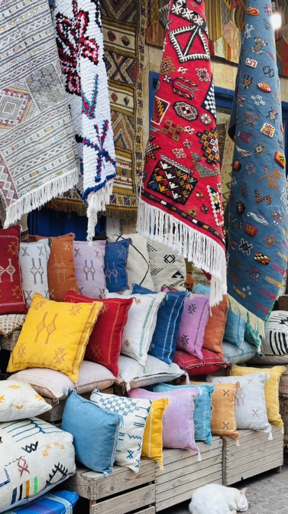 Sigue caminando por la medina, las calles de Essaouira, el Zoco, nada tiene desperdicio. Es un sitio súper tranquilo y agradable, notarás una gran diferencia frente a otros lugares de Marruecos como por ejemplo el Zoco de Marrakech. En Essaouira podrás caminar tranquilamente, disfrutar de la ciudad, y hacer tus compras de forma relajada.