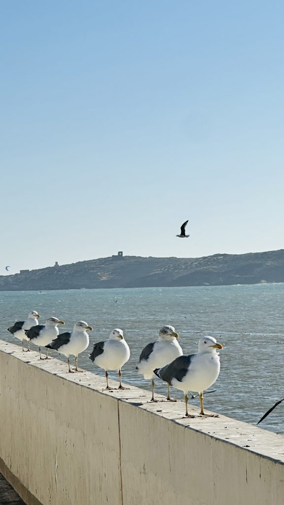 En el puerto también encontrarás otro punto de interés conocido como La Sqala Du Port. Se trata de una antigua fortificación construida en el siglo XVIII para proteger el puerto y la ciudad de posibles ataques. Esta fortaleza se encuentra a lo largo del puerto de Essaouira, lo que le da una ubicación privilegiada con vistas panorámicas al océano Atlántico y al puerto. En algunos meses suele hacer bastante viento, sobre todo lo notarás por esta fortificación ya que está más elevada. También hay muchas gaviotas merodeando por aquí… ¡Ten cuidado no te caiga un regalito del cielo!
