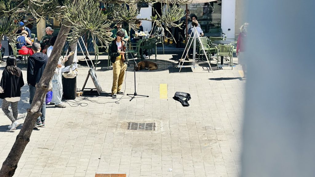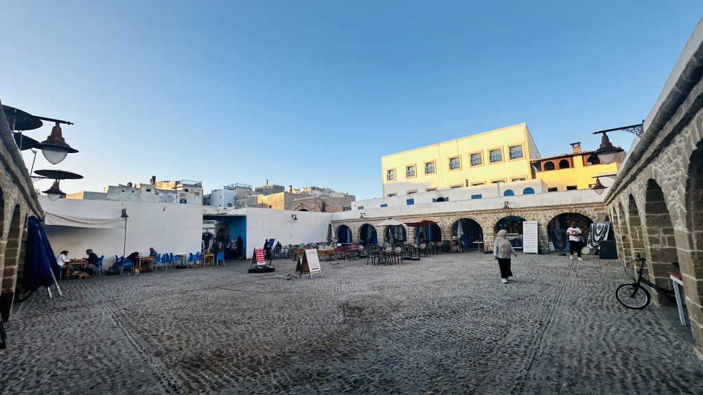 Se trata de una pequeña pero animada plaza ubicada en el corazón de la medina, cerca del puerto, y es un lugar popular tanto para locales como para turistas. Esta plaza refleja una parte importante del ambiente y la vida cotidiana de la ciudad. Nosotros disfrutamos de una comida muy agradable mientras un artista local tocaba la guitarra y cantaba en el centro de la plaza, fue un momento muy especial.