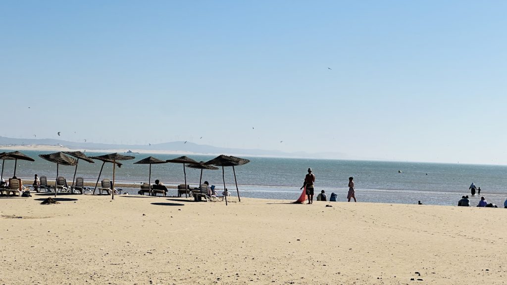 Es famosa por su arena dorada, vistas al océano Atlántico, y su ambiente tranquilo. La playa se extiende a lo largo de 4-5 km de costa, directamente al oeste de la medina de Essaouira, y es fácilmente accesible desde el centro de la ciudad. Suele hacer bastante viento, lo que la convierte en en lugar ideal para practicar deportes como el surf, windsurf o kitesurf. También se suelen realizar otras actividades como paseo a caballo. Nos pareció una playa muy bonita y creemos que es un lugar ideal para pasar unas vacaciones de sol y playa.